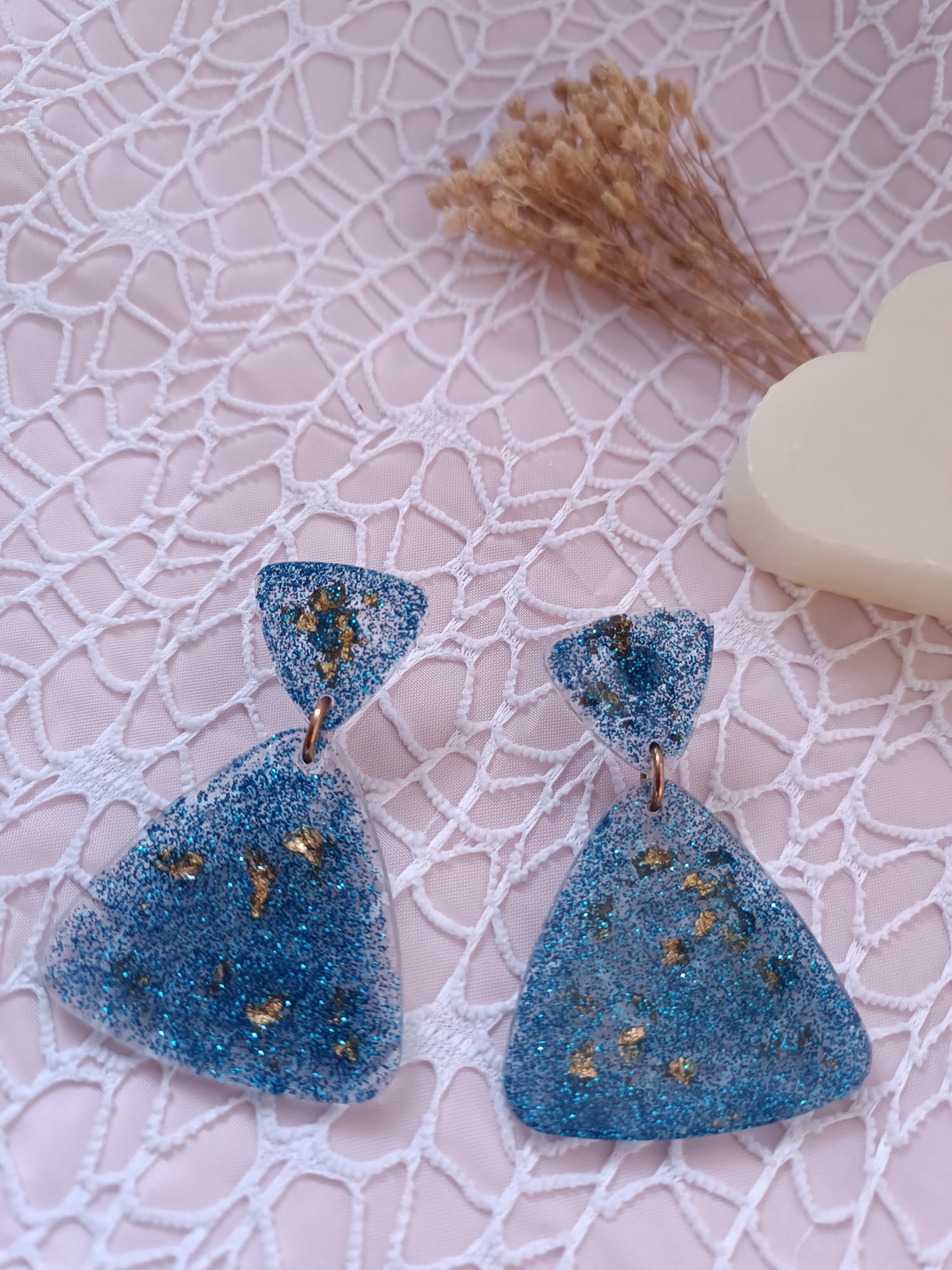 Orecchini realizzati a mano con l'utilizzo della resina liquida , base orecchino in acciaio inossidabile e anallergico .