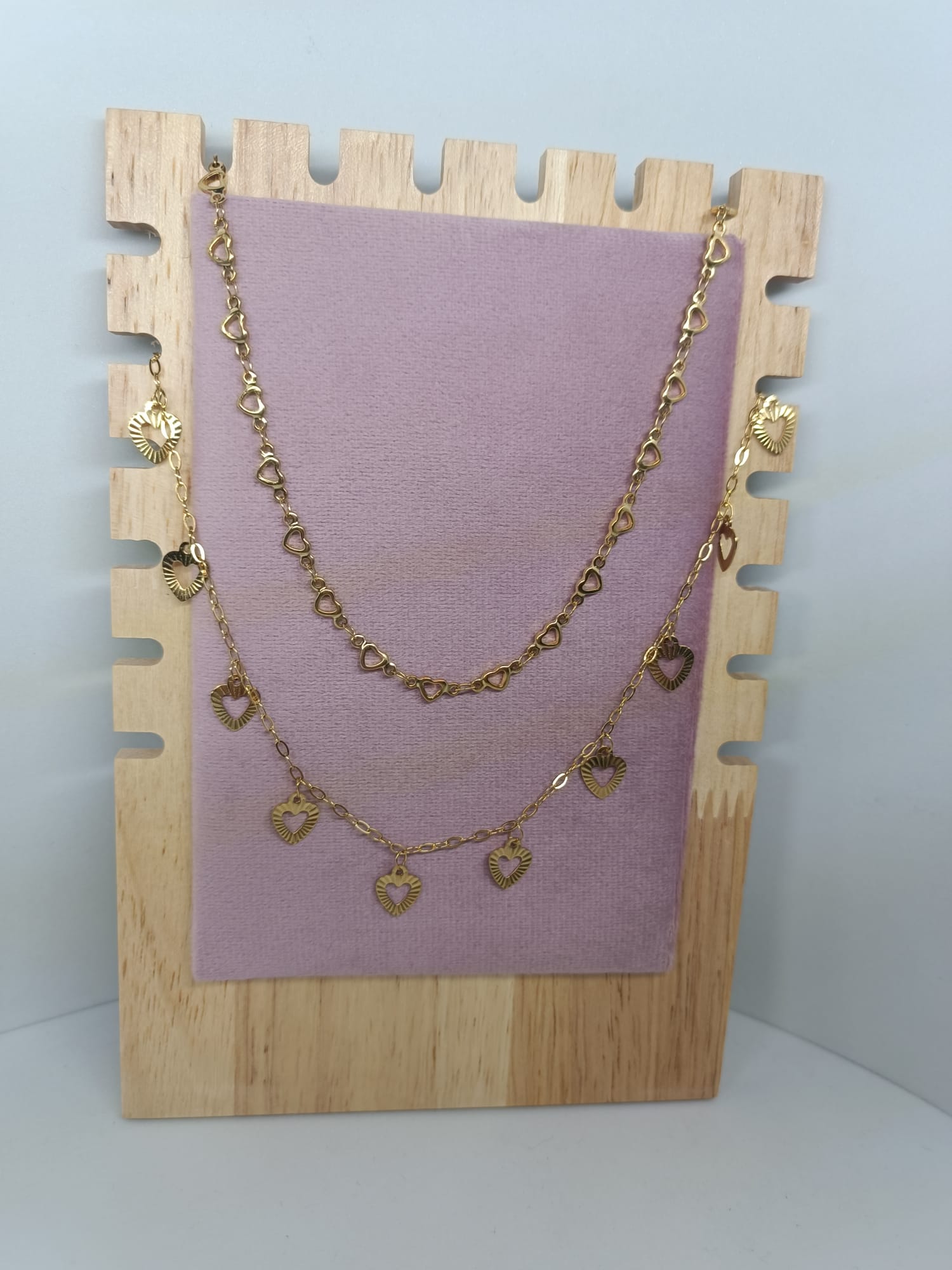 Scopri Love 2.0 in acciaio dorato, la combo perfetta di 2 collane a cuori che catturano l'essenza della dolcezza e dell'eleganza. Indossale insieme per un look romantico e affascinante, oppure separatamente per versatilità quotidiana. Ogni collana è stata pensata per completare il tuo stile personale . Perfette come regalo speciale o come trattamento per te stessa .
