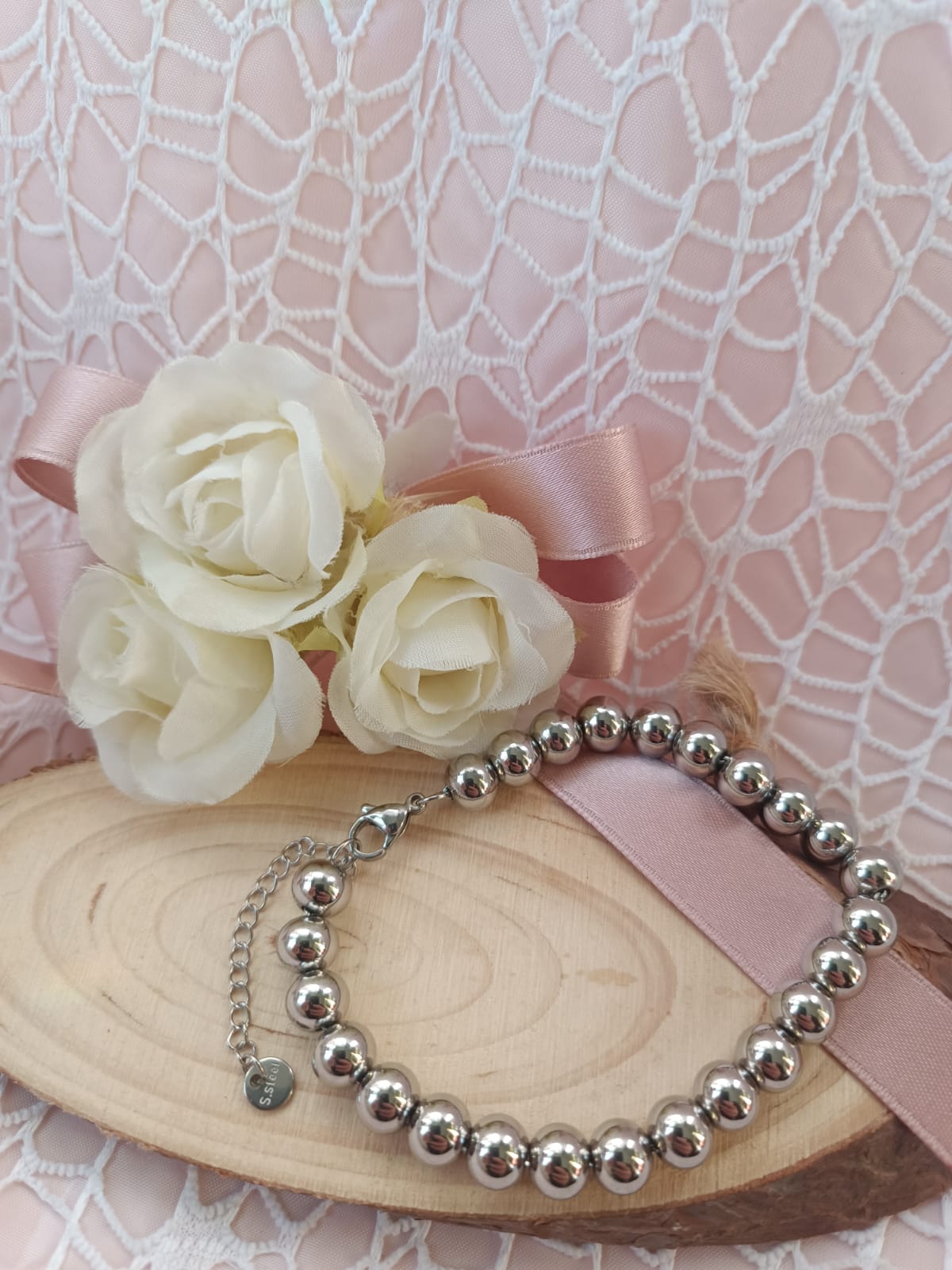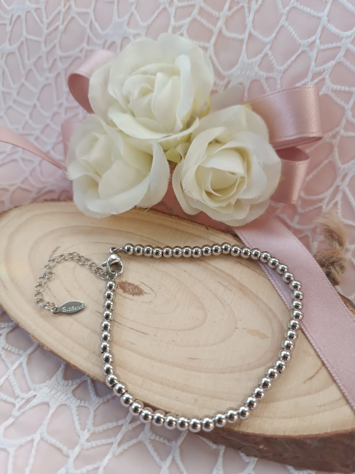 Bracciale delicato con sfere in acciaio inossidabile, perfetto per chi ama lo stile minimalista e sofisticato. Le piccole sfere lucide catturano la luce creando un effetto elegante al polso, mentre l'acciaio garantisce durabilità e resistenza nel tempo. Ideale da indossare da solo o abbinato ad altri bracciali per un look personalizzato. Un accessorio versatile che si adatta a qualsiasi occasione, dal quotidiano agli eventi speciali.